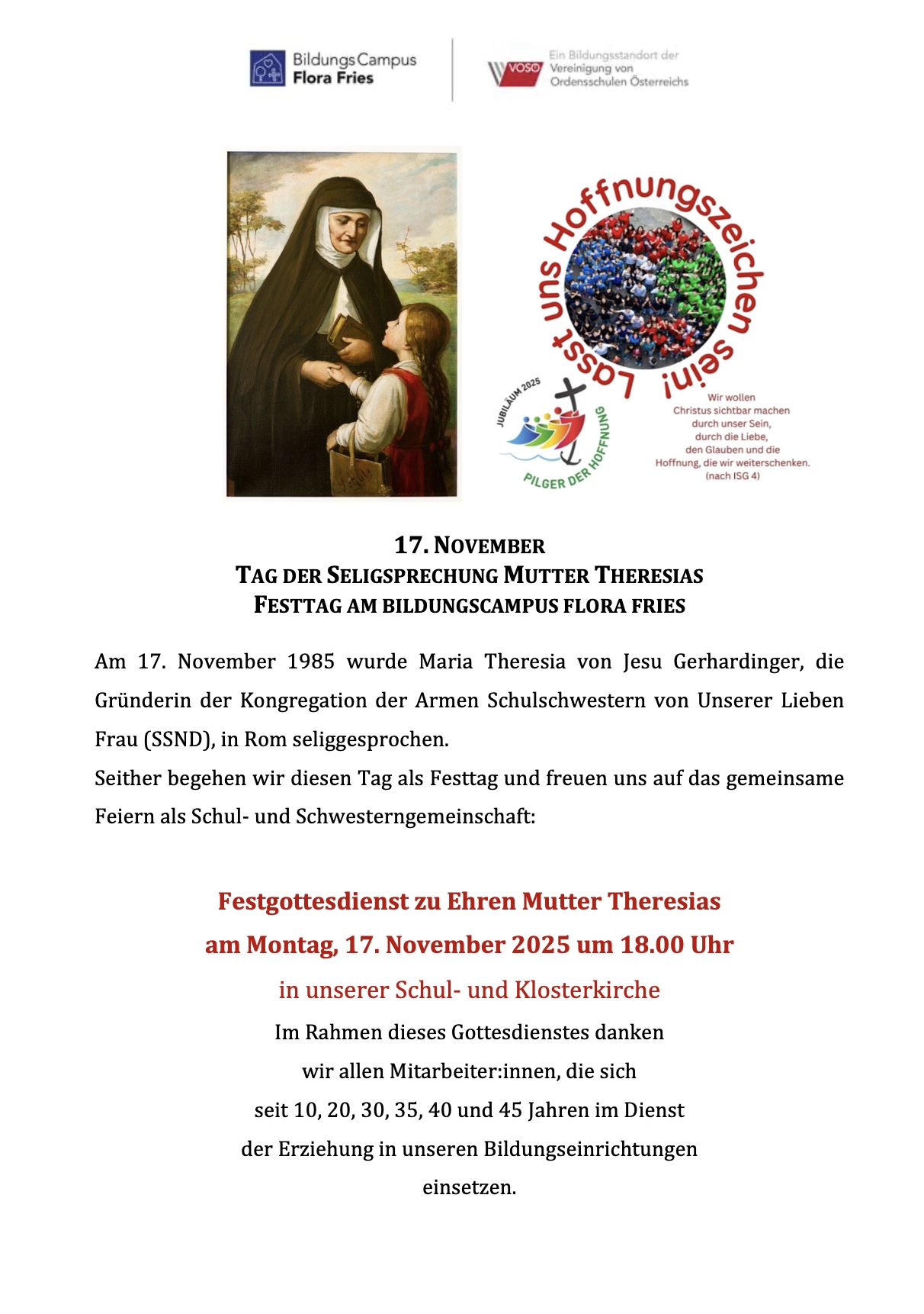 Herzliche Einladung zum Festgottesdienst anlässlich der Seligsprechung unserer Ordensgründerin! mehr lesen »Wir sind COOL und ausgezeichnet