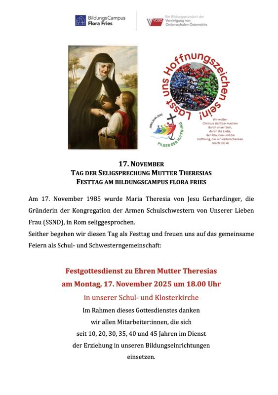 Festgottesdienst zu Ehren Mutter Theresias