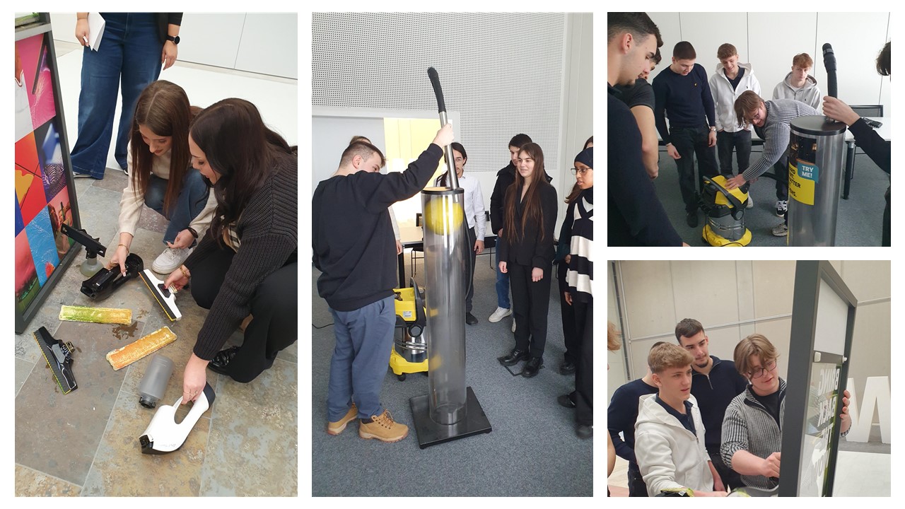 Das Unternehmen Alfred Kärcher GmbH, Weltmarkführer in der Reinigungstechnik, ist schon seit vielen Jahren Partnerfirma unserer Übungsfirma Cleantech GmbH. Nach einer spannenden Marketingpräsentation erfuhren die Schüler*innen, wie die 4Ps in der Praxis umgesetzt werden. Frau Flath aus der Personalabteilung gab wertvolle Bewerbungstipps – auch zum Einsatz von KI. Ein Highlight war der Wettbewerb mit Kärcher-Produkten, bei dem Teamgeist und Spaß im Vordergrund standen. Nachhaltigkeit spielt bei Kärcher eine große Rolle: Mehr als 50 % Rezyklat wird in der Produktion verwendet, die Produkte haben einen langen Lebenszyklus und arbeiten wasser- und energiesparend. Wir wurden mit frischen Brötchen, Goodies und Gutscheinen verwöhnt - danke für die interessante Unternehmenspräsentation.