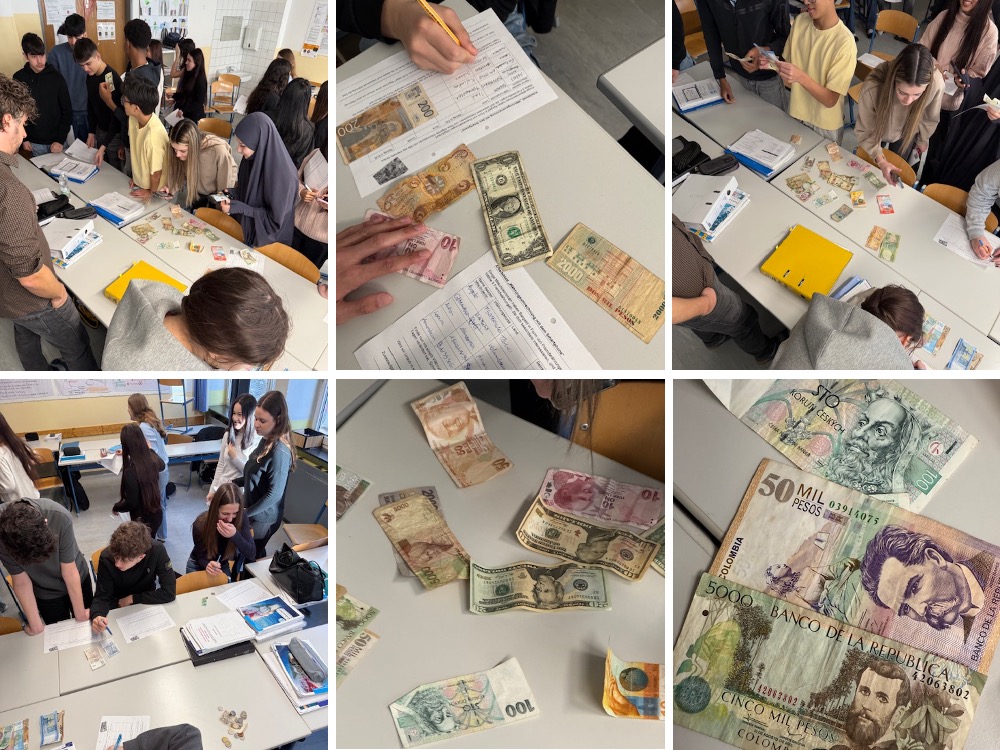 Die Schüler:innen brachten nicht nur bekannte aktuelle Währungen, wie zB türkische Lira, britische Pfund oder amerikanische Dollar, sondern auch weniger bekannte Währungen, wie kolumbianische Pesos oder tansanische Schilling oder historische Währungen, wie zB italienische Lire.