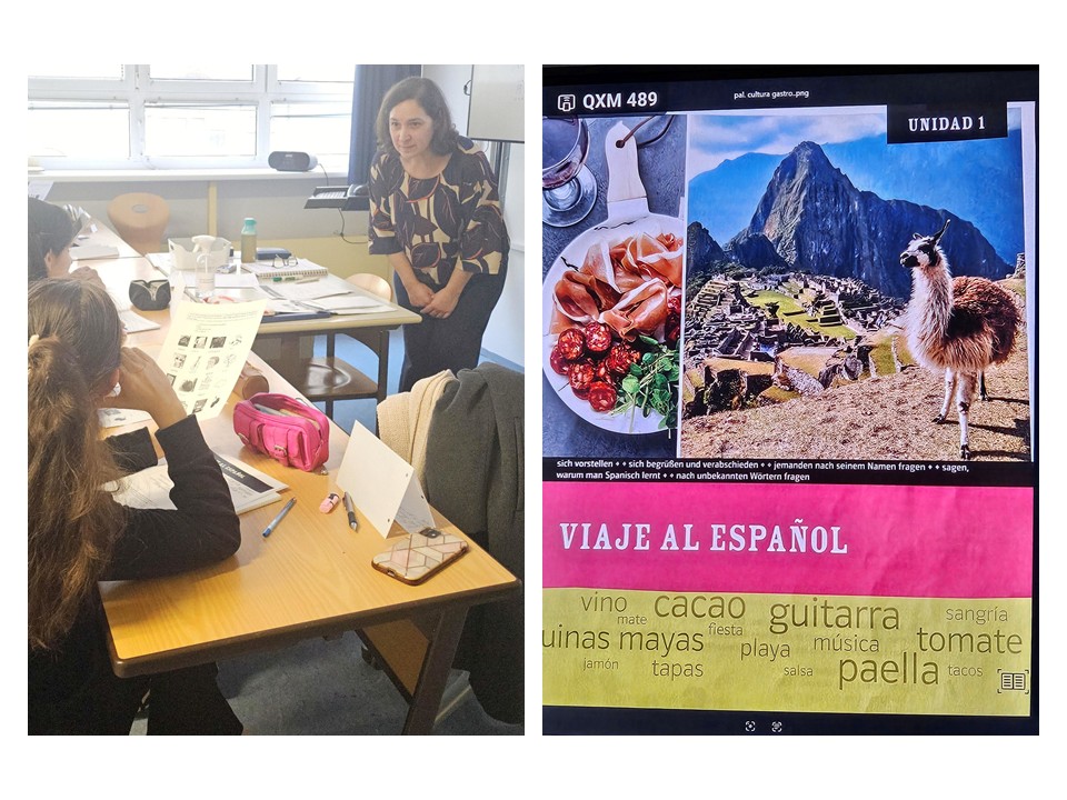 Beim Sprachworkshop lernten die Schüler:innen grundlegende Begriffe wie "vida, casa, salsa" kennen und übten Begrüßungen wie „Hola, soy..." und „Qué tal?". Mit großer Begeisterung lernten sie außerdem das alfabeto español und konnten am Ende der Einheit sicher bis zehn zählen. Der Workshop bot einen spielerischen und motivierenden Einstieg in die spanische Sprache, stärkte das Vertrauen in erste Ausdrucksversuche und zeigte eindrucksvoll, wie viel Freude gemeinsames Sprachenlernen machen kann.